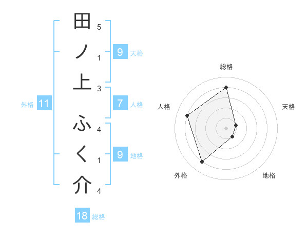 田ノ上 ふく介さんを姓名の画数から五運を鑑定