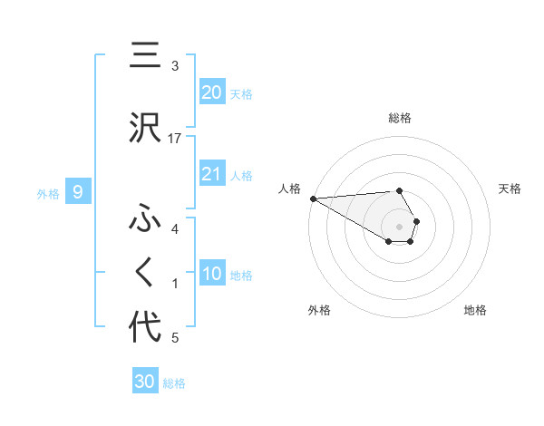 三沢 ふく代さんを姓名の画数から五運を鑑定