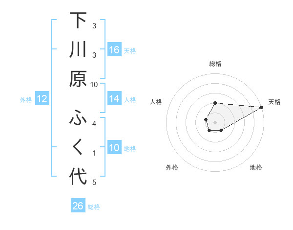 下川原 ふく代さんを姓名の画数から五運を鑑定