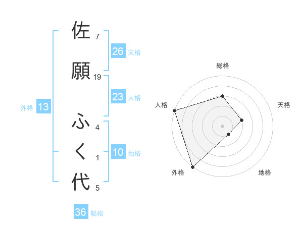佐願 ふく代さんを姓名の画数から五運を鑑定