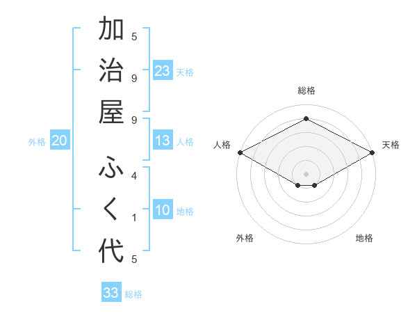 加治屋 ふく代さんを姓名の画数から五運を鑑定