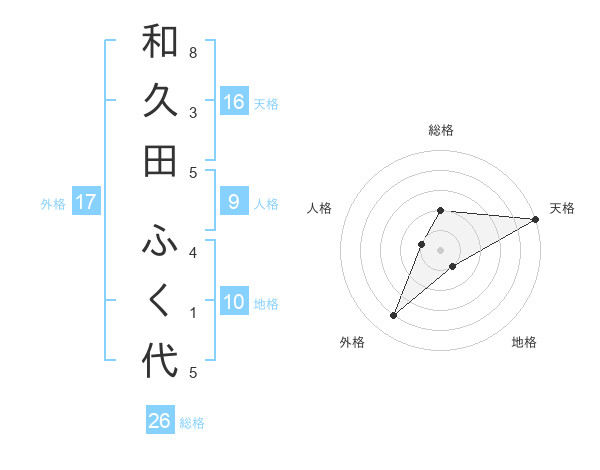 和久田 ふく代さんの総格は26画の2点!