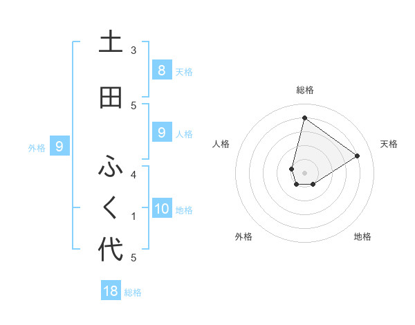 土田 ふく代さんを姓名の画数から五運を鑑定
