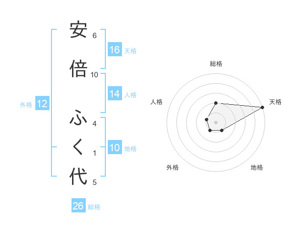 安倍 ふく代さんを姓名の画数から五運を鑑定