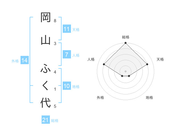 岡山 ふく代さんの総格は21画の5点!