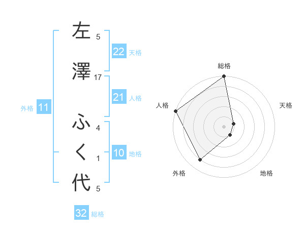 左澤 ふく代さんを姓名の画数から五運を鑑定