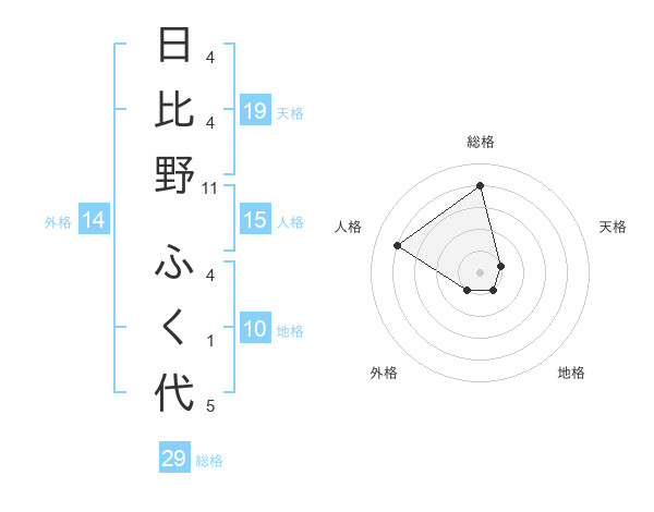 日比野 ふく代さんの総格は29画の4点!