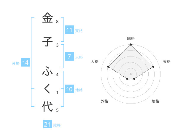 金子 ふく代さんを姓名の画数から五運を鑑定