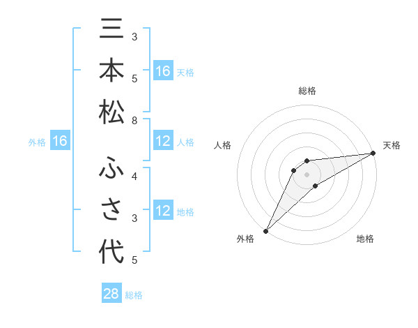 三本松 ふさ代さんの総格は28画の1点