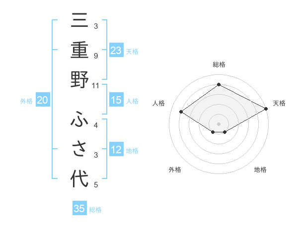 三重野 ふさ代さんを姓名の画数から五運を鑑定