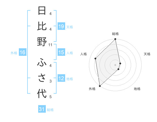 日比野 ふさ代さんを姓名の画数から五運を鑑定
