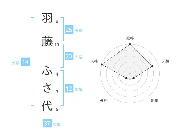 羽藤 ふさ代さんを姓名の画数から五運を鑑定