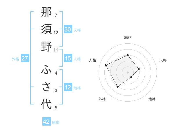 那須野 ふさ代さんを姓名の画数から五運を鑑定