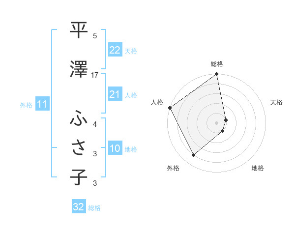 平澤 ふさ子さんを姓名の画数から五運を鑑定