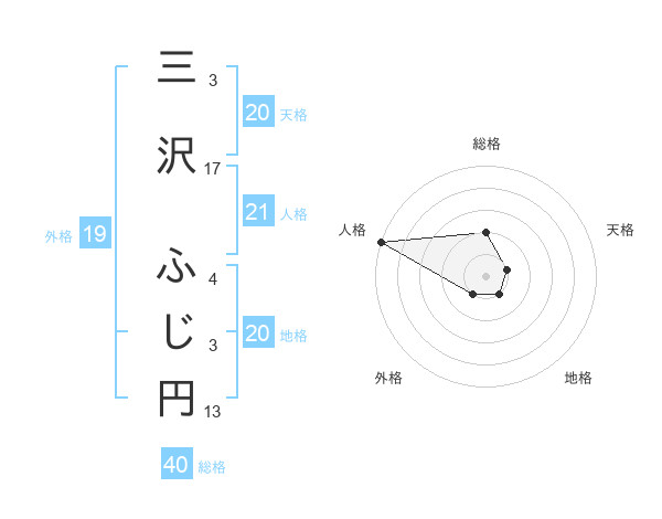 三沢 ふじ円さんを姓名の画数から五運を鑑定