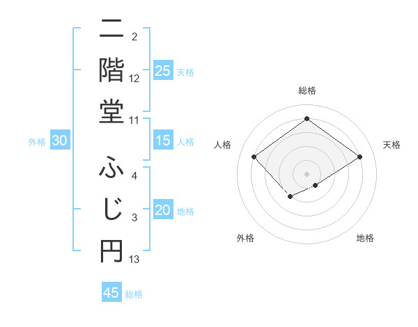 二階堂 ふじ円さんを姓名の画数から五運を鑑定