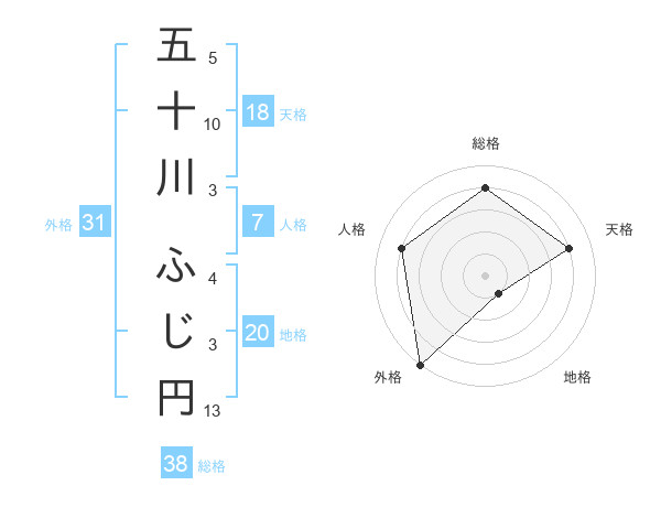 五十川 ふじ円さんを姓名の画数から五運を鑑定