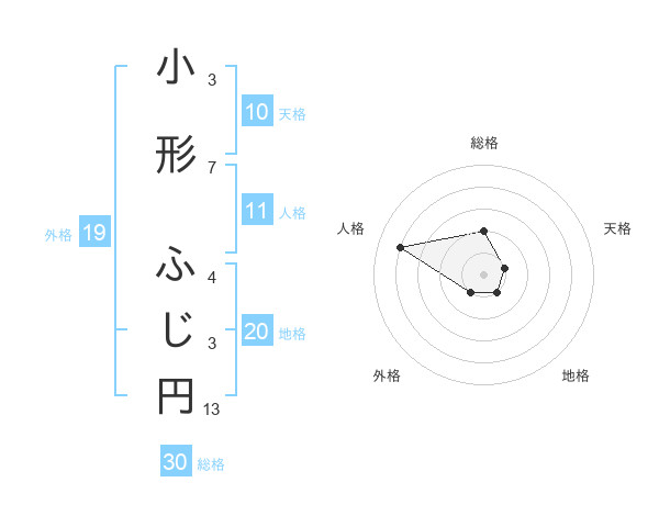 小形 ふじ円さんを姓名の画数から五運を鑑定