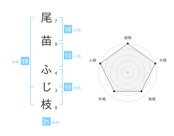 尾苗 ふじ枝さんを姓名の画数から五運を鑑定