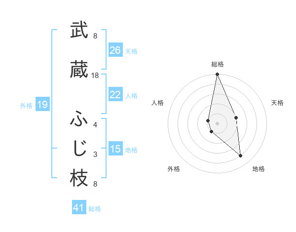 武蔵 ふじ枝さんの総格は41画の5点!