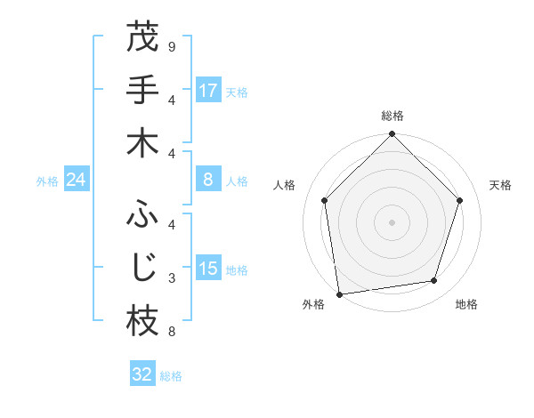茂手木 ふじ枝さんを姓名の画数から五運を鑑定