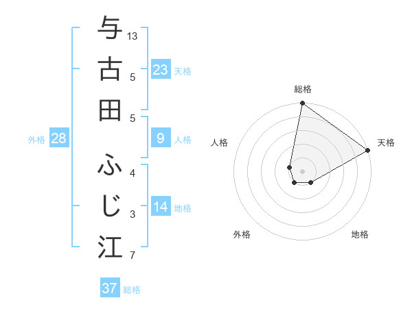 与古田 ふじ江さんの総格は37画の5点!