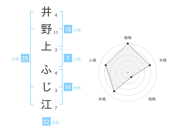 井野上 ふじ江さんを姓名の画数から五運を鑑定
