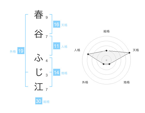 春谷 ふじ江さんを姓名の画数から五運を鑑定