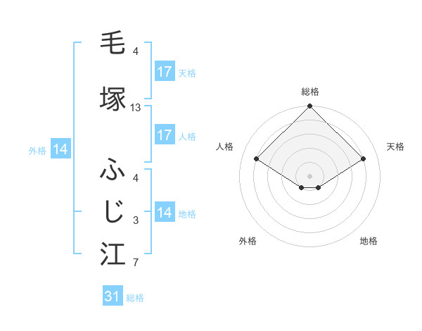 毛塚 ふじ江さんを姓名の画数から五運を鑑定