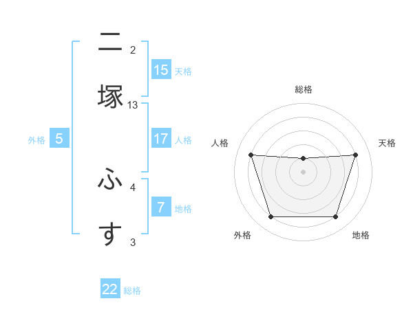 二塚 ふすさんの総格は22画の1点!
