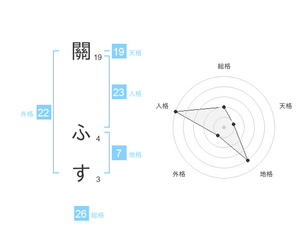 關 ふすさんの総格は26画の2点!