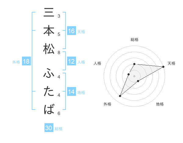 三本松 ふたばさんを姓名の画数から五運を鑑定