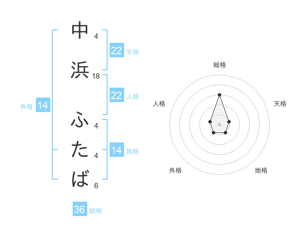 中浜 ふたばさんの地格は14画の1点!
