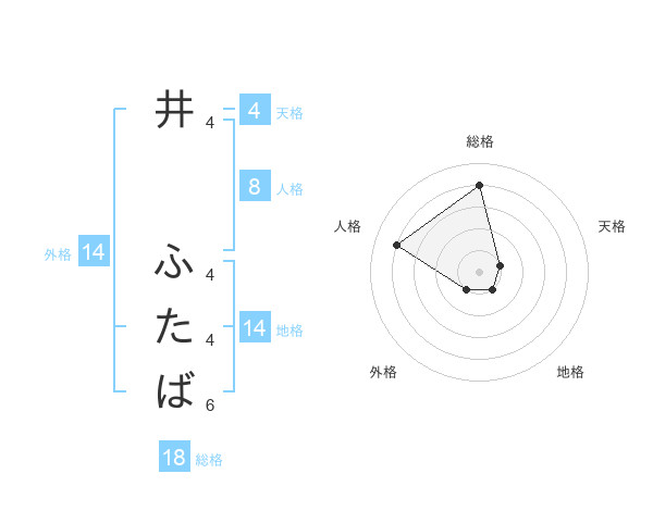 井 ふたばさんの総格は18画の4点!