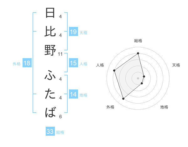 日比野 ふたばさんを姓名の画数から五運を鑑定