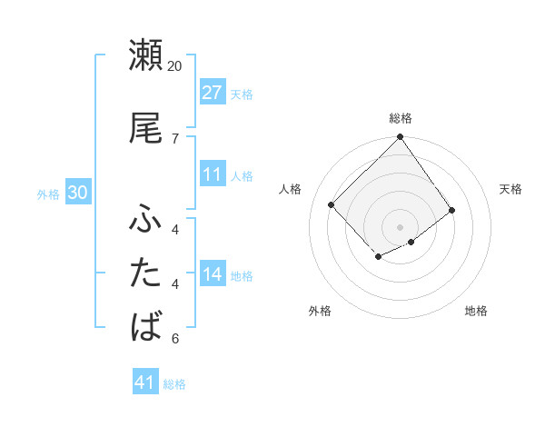 瀬尾 ふたばさんの総格は41画の5点!