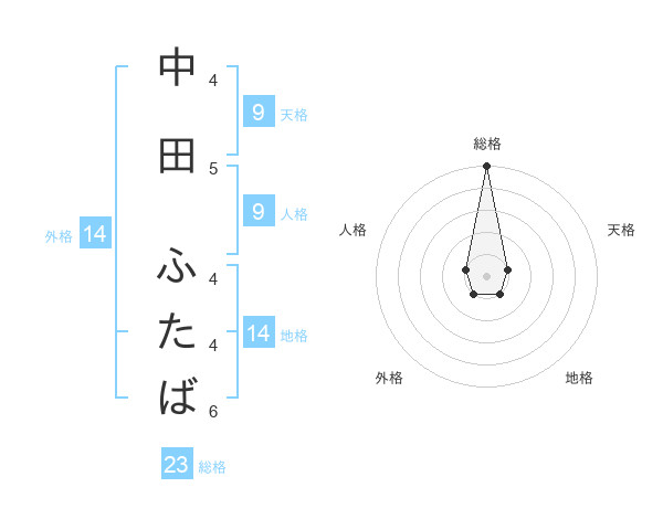 中田 ふたばさんの総格は23画の5点!