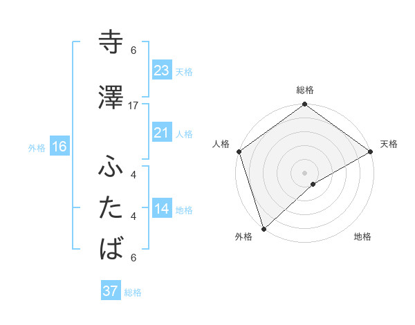 寺澤 ふたばさんを姓名の画数から五運を鑑定