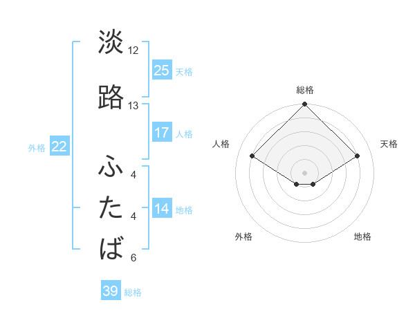 淡路 ふたばさんを姓名の画数から五運を鑑定
