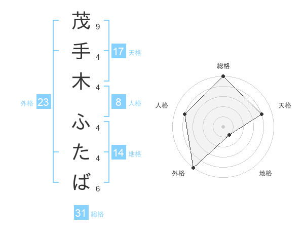 茂手木 ふたばさんを姓名の画数から五運を鑑定