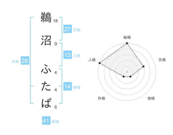 鵜沼 ふたばさんを姓名の画数から五運を鑑定