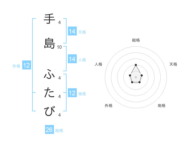手島 ふたびさんを姓名の画数から五運を鑑定
