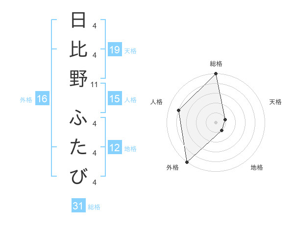 日比野 ふたびさんを姓名の画数から五運を鑑定