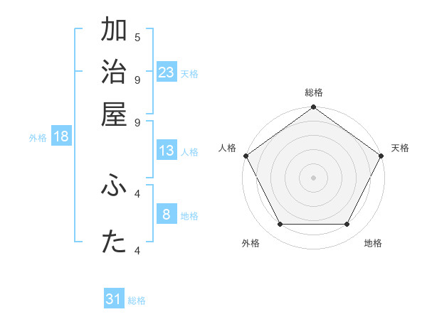 加治屋 ふたさんの総格は31画の5点!