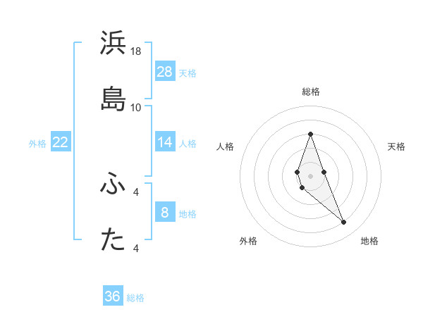 浜島 ふたさんを姓名の画数から五運を鑑定