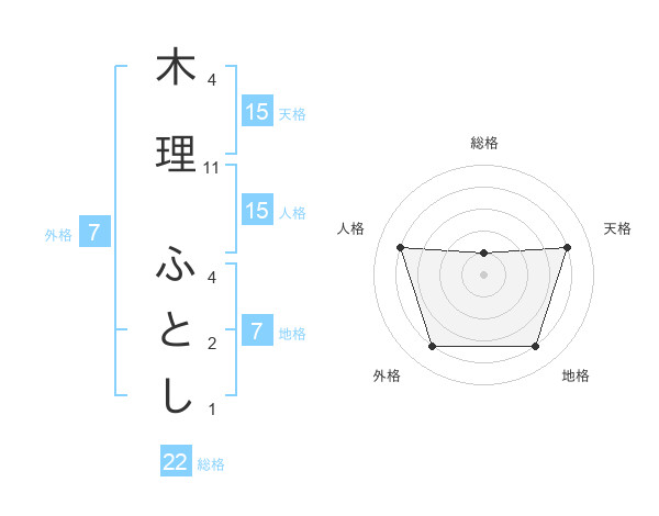 木理 ふとしさんの総格は22画の1点!