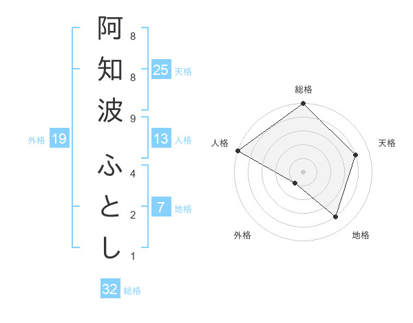 阿知波 ふとしさんの天格は25画の4点!