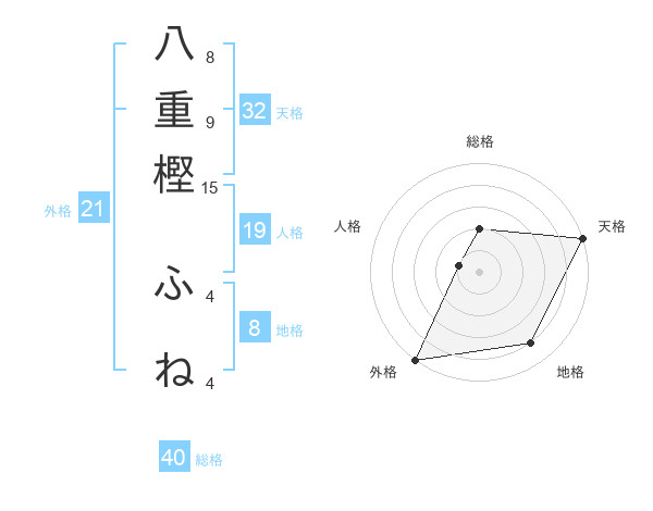 八重樫 ふねさんを姓名の画数から五運を鑑定