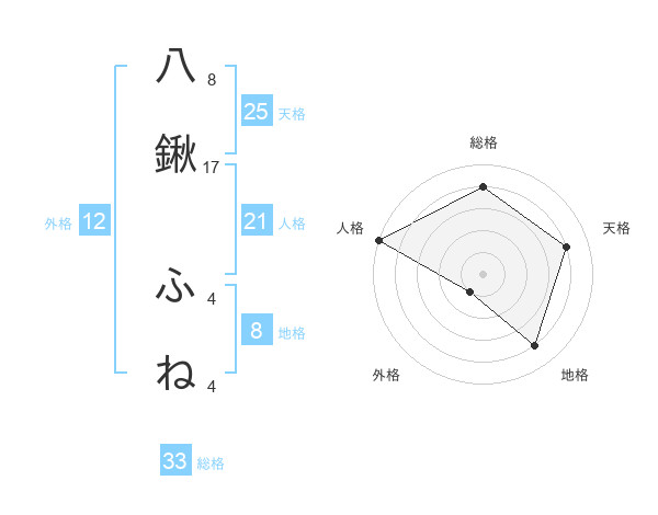 八鍬 ふねさんの総格は33画の4点!