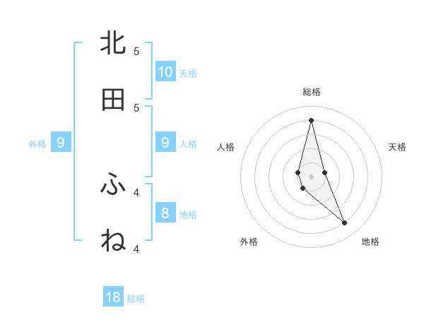 北田 ふねさんの総格は18画の4点!